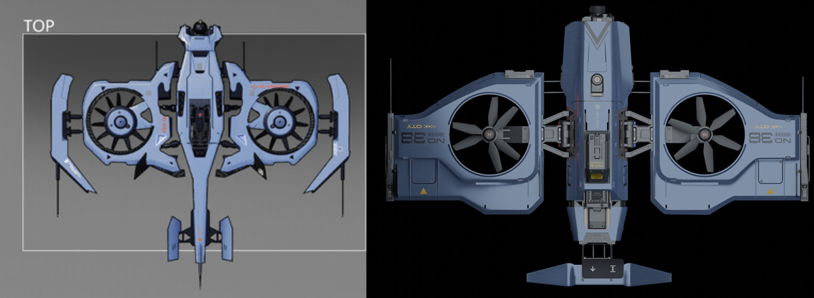 Thinking: My initial thought was to create a drone that could carry some light weapons, so I looked for two prototype designs that I thought were suitable as reference images.
